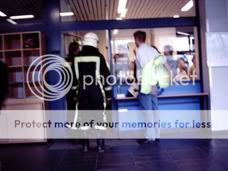 Fora da aula... os bombeiros chegavam (e não havia fogo!). Fora do edifício arte acontecia (e não estão cá os freaks da cantina). No parque de estacionamento algumas biclas têm coisas ao contrário. Em casa a Iris dá-me choques. Desde que chegámos o Hugo ainda só se espetou uma vez.